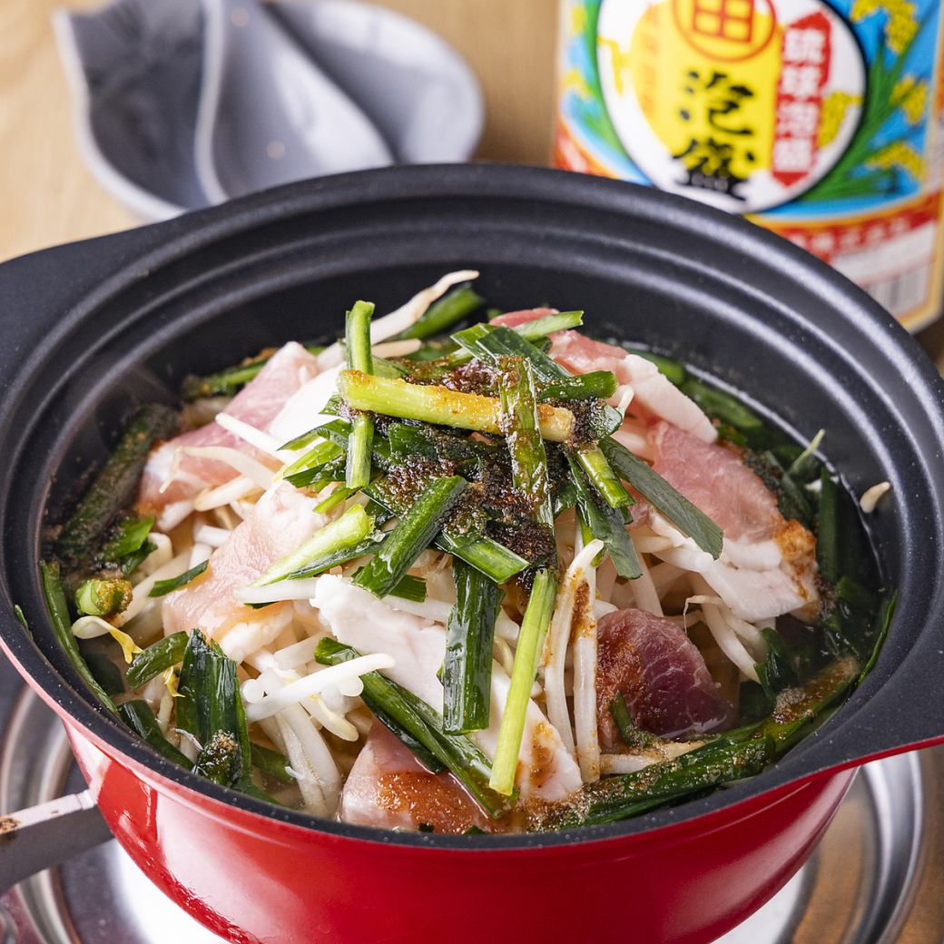 自家製のにんにくダレが香る「一平鍋」は、沖縄県産あぐー豚と野菜を贅沢に煮込んだオリジナルの鍋料理♪深い味わいが広がり、一口ごとに幸せを感じられます!〆には追加で沖縄そばをどうぞ♪お一人様でも安心の一人鍋スタイルで、気軽に楽しむことができます!心も体も温まる一品をぜひご賞味ください!